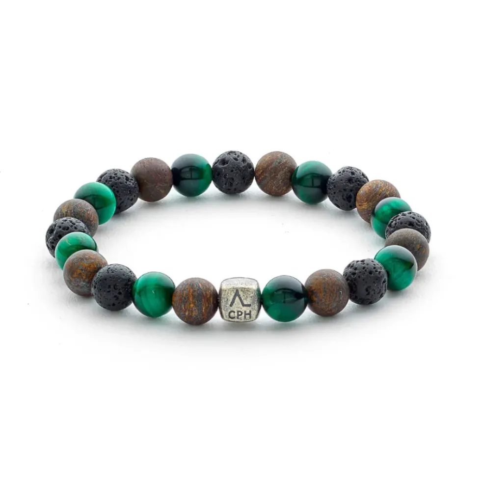 Tag et skridt ind i Finlands magiske landskaber med Helsinki-armbåndet fra Alexander Lynggaard. Dette armbånd kombinerer grøn tigerøje, bronzit og lava sten i et design, der afspejler den naturlige skønhed og stærke energi i den finske hovedstad. Perfekt til den moderne mand, der ønsker at bære noget unikt, inspireret af et af Europas smukkeste og mest mystiske steder.
