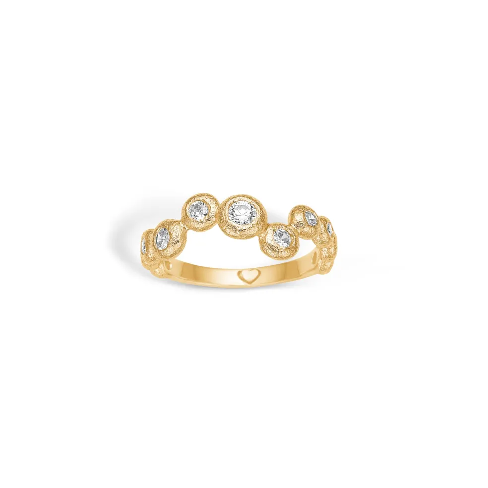 Fin ring fra Blossom i forgyldt sølv. Toppen af ringen er udformet som bobler med klare zirkonia sten i.