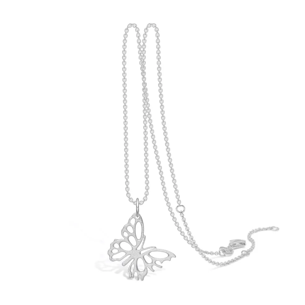 Halskæden giver mulighed for at justere længden og kan bæres ved 38 cm, 42 cm eller 45 cm, hvilket gør den alsidig og nem at style til forskellige anledninger. Sommerfuglevedhænget måler 18×16 mm, en ideel størrelse til at fremhæve det fine og feminine design uden at være for dominerende.