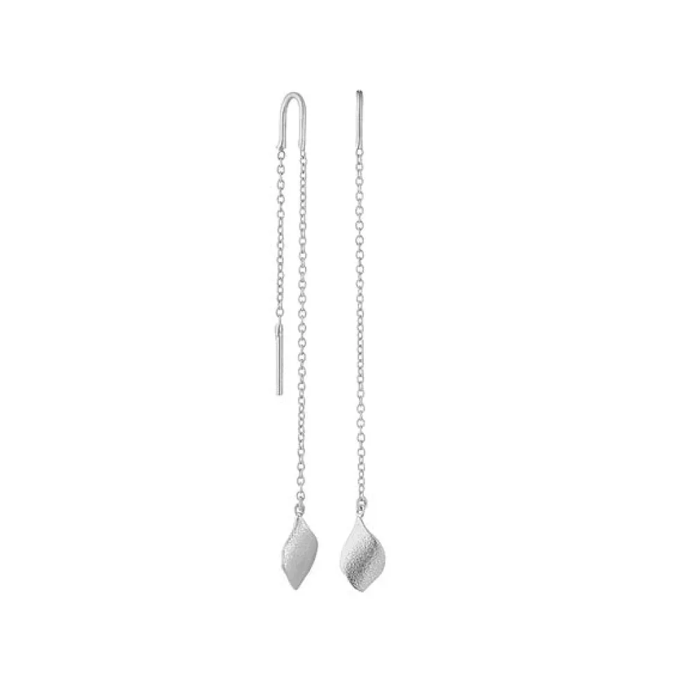 Sølv ørehænger med kæde og et blad. Midt på kæden er der en bøjle hvilket gør at ørehængeren sidder bedre. Øreringen er designet at Vicky Joé for Blossom.