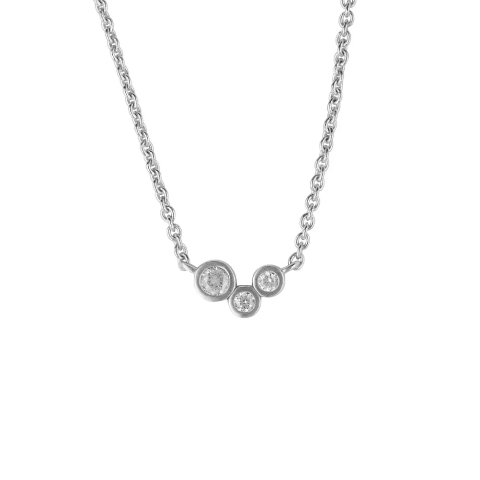 Sølv halskæde i Stardust serien. Halskæden har et lille vedhæng der sidder fast på kæden. Vedhænget består af 3 små hvid sten i forskellig størrelse.