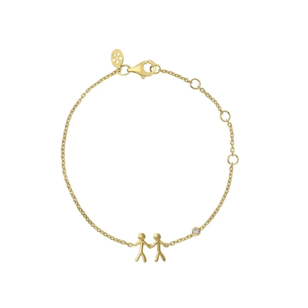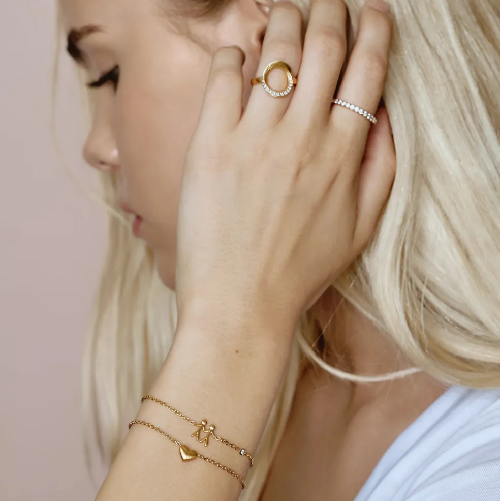 Together Family armbåndet fra byBiehl er en smuk og meningsfuld måde at fejre forholdet mellem dig og dine kære på. Dette forgyldte sølv armbånd har et unikt design med to personfigurer, der symboliserer samhørigheden og kærligheden i din familie.