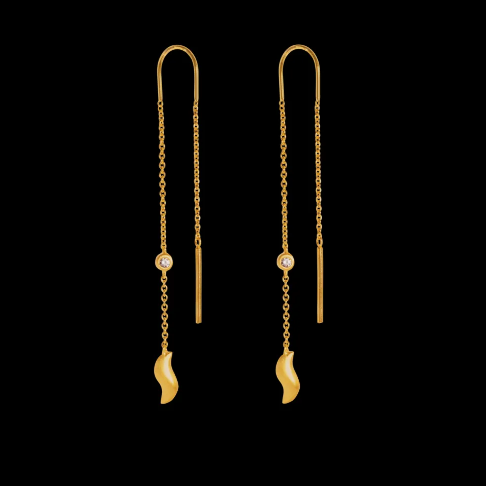 Fine kæde ørehængere med et lille wave vedhæng fra byBiehl. Ørehængerne er lavet i 14kt guldbelagt sølv med en lille zirkonia sten midt på kæden.