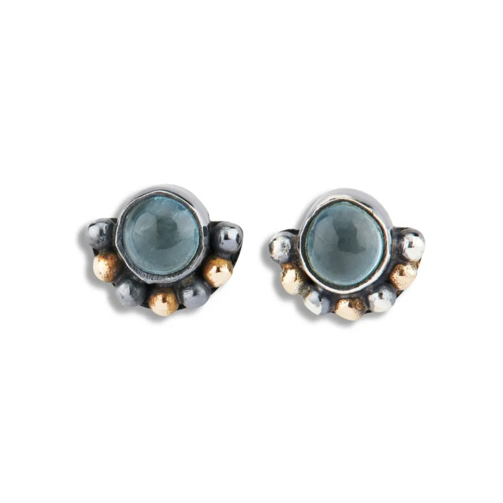 Sølv ørestik fra byBirdie. Ørestikken er så fin med en Akvamarin sten hvor der under er en masse kugler. Stenen er en smuk lyseblå ægte akvamarin. Øreringene måle 6,5x8mm