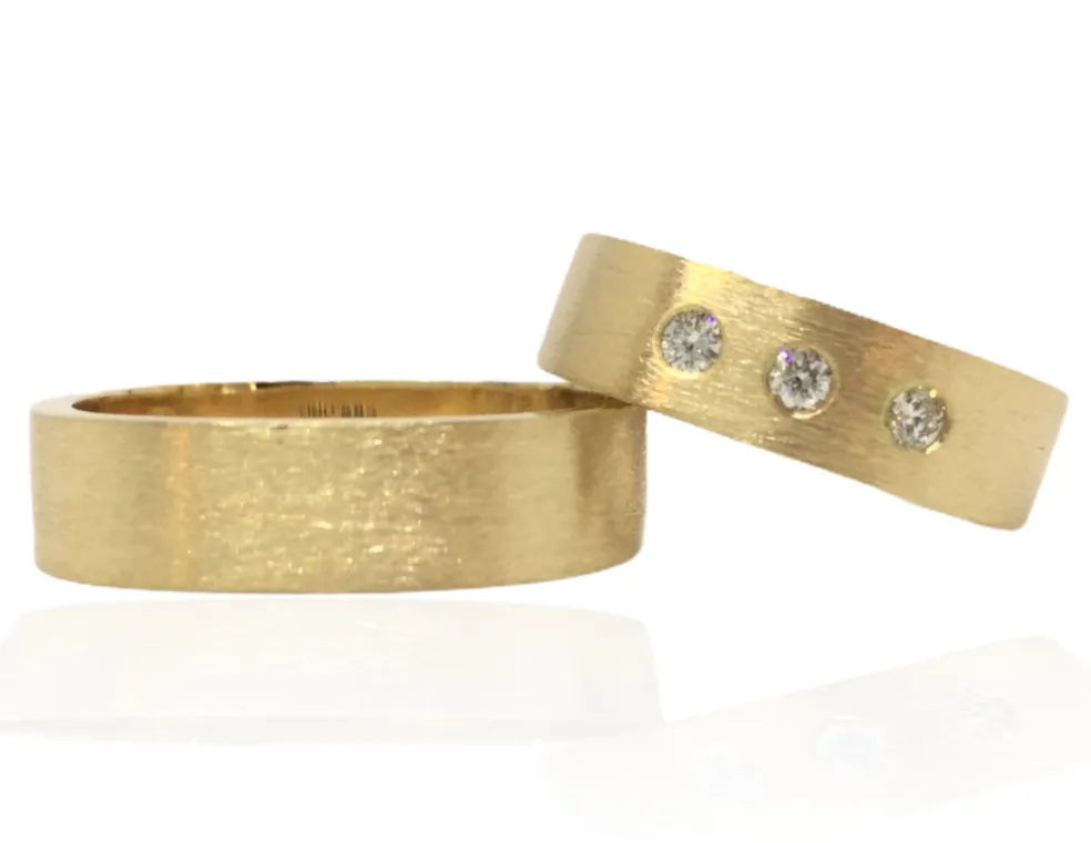 Begge ringe har en børstet overflade, som giver et lidt mere råt udtryk.