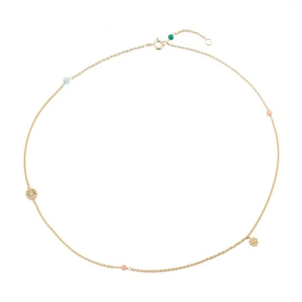 Sølv forgyldt kæde med fra Len visholm. Halskæden har små fine sten i rosa farve og 2 blomster med sten.