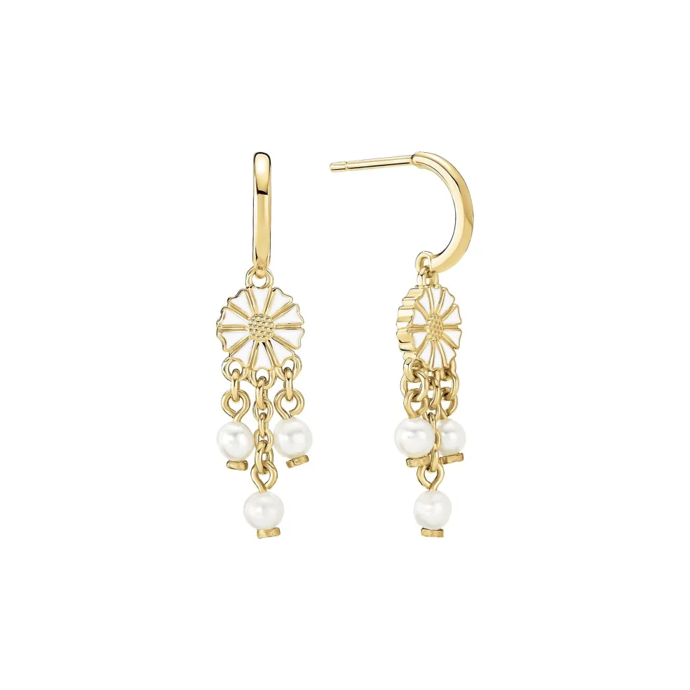 Lund Copenhagen – Forgyldte Sølv Marguerit Ørehængere med Perler