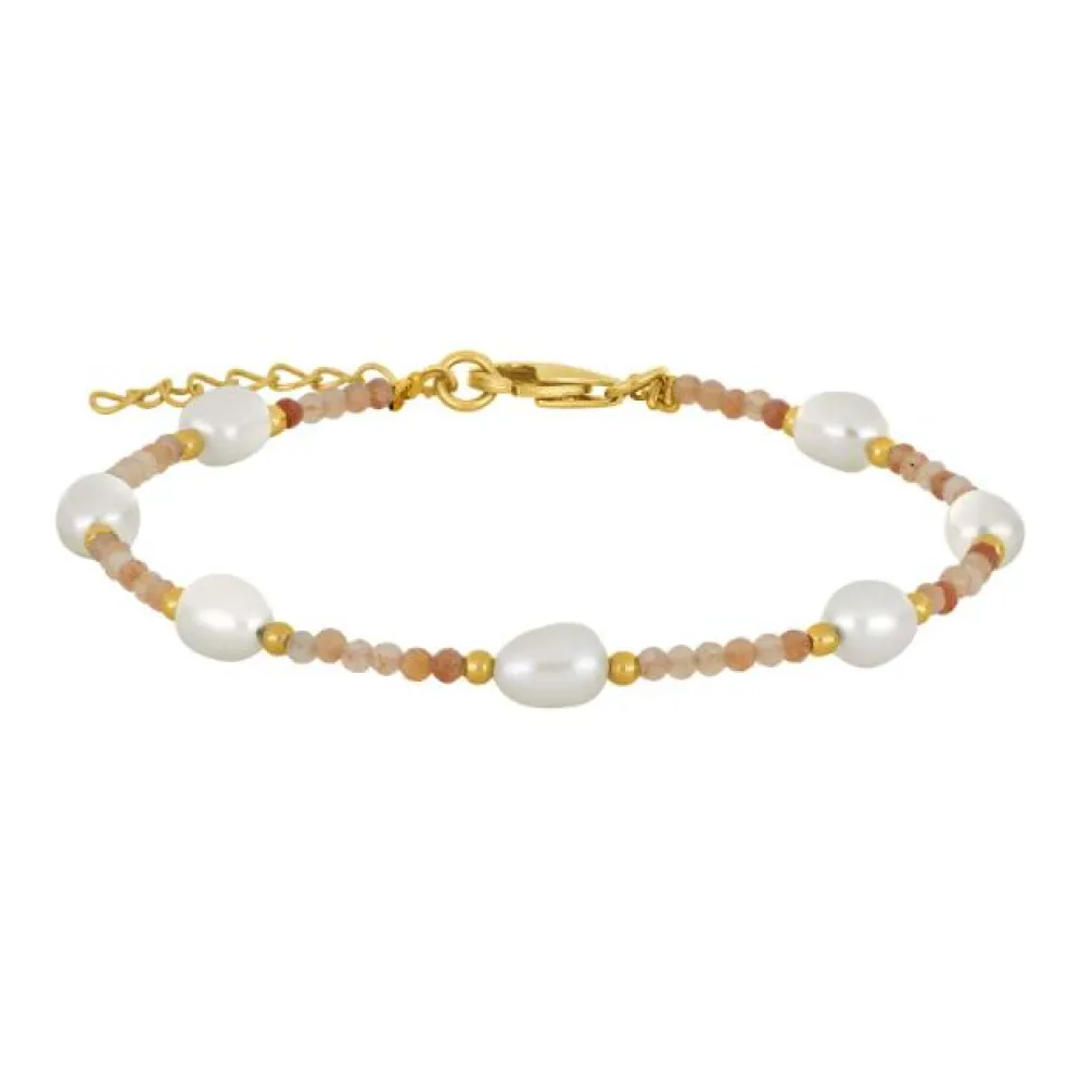 Fremstillet med omhu og detalje, er dette forgyldte armbånd udsmykket med perler og aventurin, der tilfører et unikt og organisk element til smykket. Aventurinens pink farve, sammen med de delikate perler, skaber en feminin balance mellem det forgyldte og naturens nuancer.