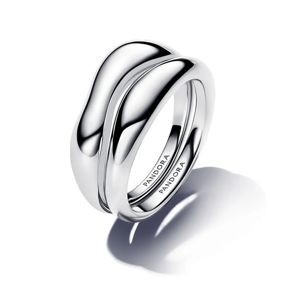 Pandora Essence: Dobbelt Sølvring med Organisk Form