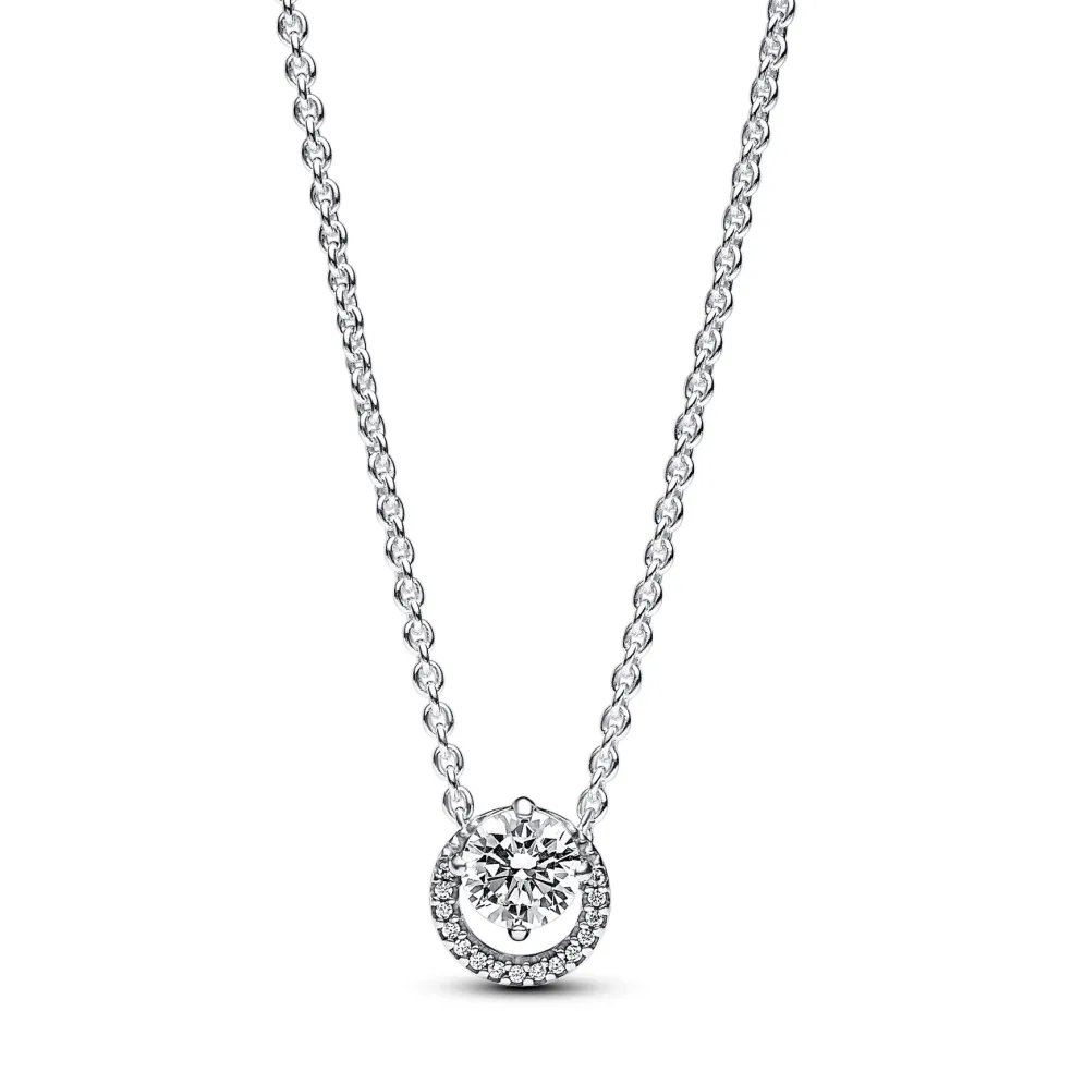 Fremhæv Din Elegance med Pandoras Funklende Runde Halo Halskæde i Sterlingsølv