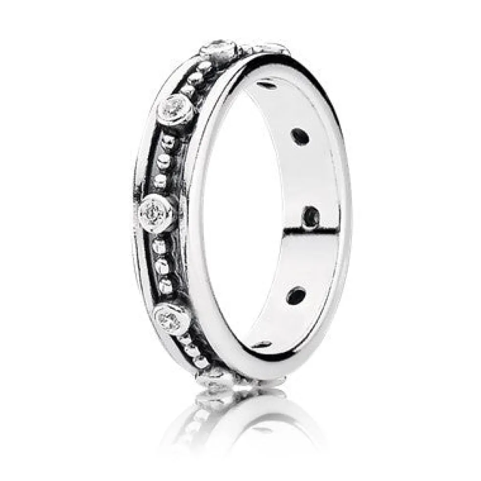 Sølvring med små kugler og zirkonia hele vejen rundt