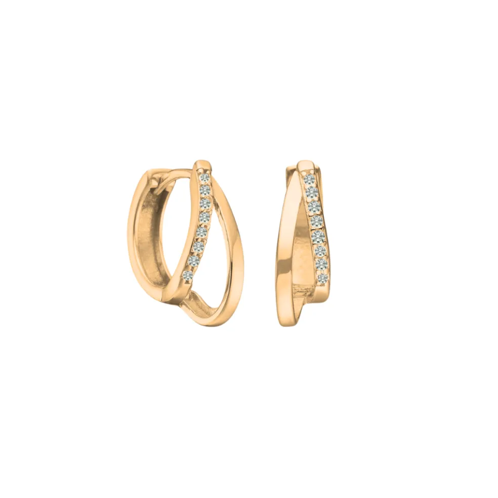 Disse elegante forgyldte creoler fra Randers Sølv er perfekte til at tilføje et strejf af glamour til dit look. Øreringene er designet med to forskudte tråde, der skaber et dynamisk look. Den ene tråd er udsmykket med en række funklende zirkoniasten, mens den anden tråd er blankpoleret, hvilket giver en smuk kontrast og et eksklusivt udtryk.