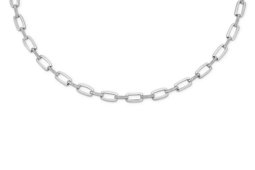 Sølv armbånd med sten. Stenene sidder på mellemleddene der samler de firkantede blanke led. Et klassisk og elegant armbånd.