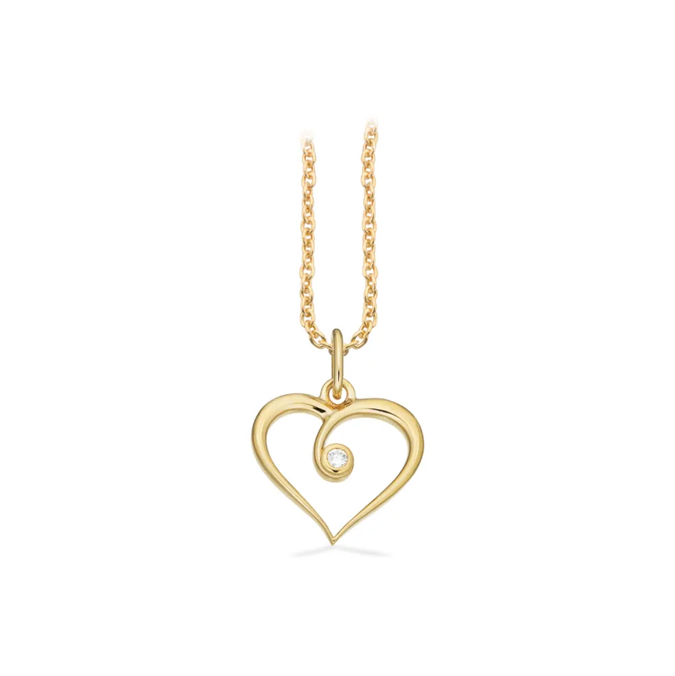 Dette smukke hjertevedhæng fra Scrouples er en klassisk og elegant måde at udtrykke din kærlighed på. Vedhænget er fremstillet i 8 karat guld og er blankpoleret for en strålende finish. I midten af hjertet, hvor en fin lille snirkel samler hjertets form, sidder en 0,02 carat H-W/SI diamant indfattet i en elegant rørfatning. Denne fine detalje tilføjer et skønt præg til det romantiske design.