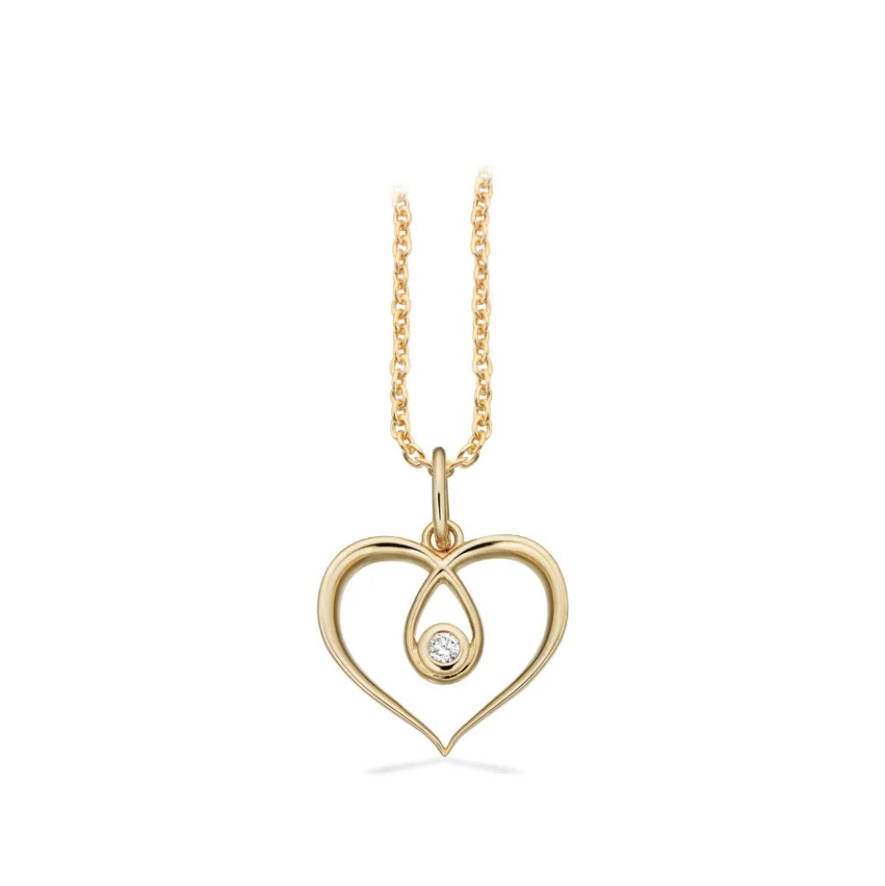 Dette hjertevedhæng fra Scrouples er den perfekte måde at udtrykke din kærlighed på. Fremstillet i 8 karat guld, er vedhænget udsmykket med en funklende H-W/SI diamant på 0,02 carat, smukt placeret i midten af hjertet. Hjerte Vedhænget måler 14×12 mm, som kombineres med en 42+3 cm lang guldbelagt sølvkæde i 925 sterling sølv, hvilket skaber et harmonisk udtryk. Den justerbare længde gør halskæden perfekt til enhver anledning.