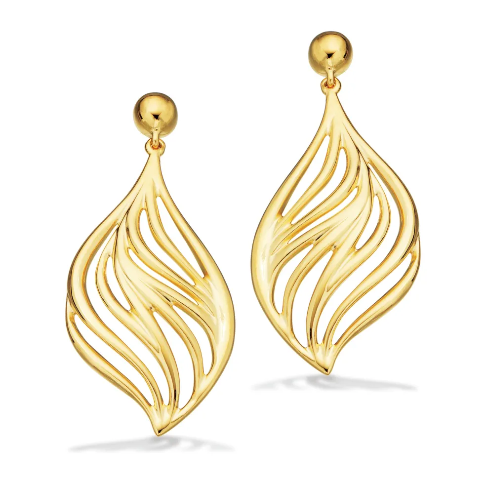 Forkæl dig selv med disse fortryllende guldbelagte sølv øreringe fra Scrouples, der bringer naturens skønhed tættere på dig. Disse øreringe er det perfekte udtryk for elegance og naturlig inspiration med deres smukke bladformede vedhæng.