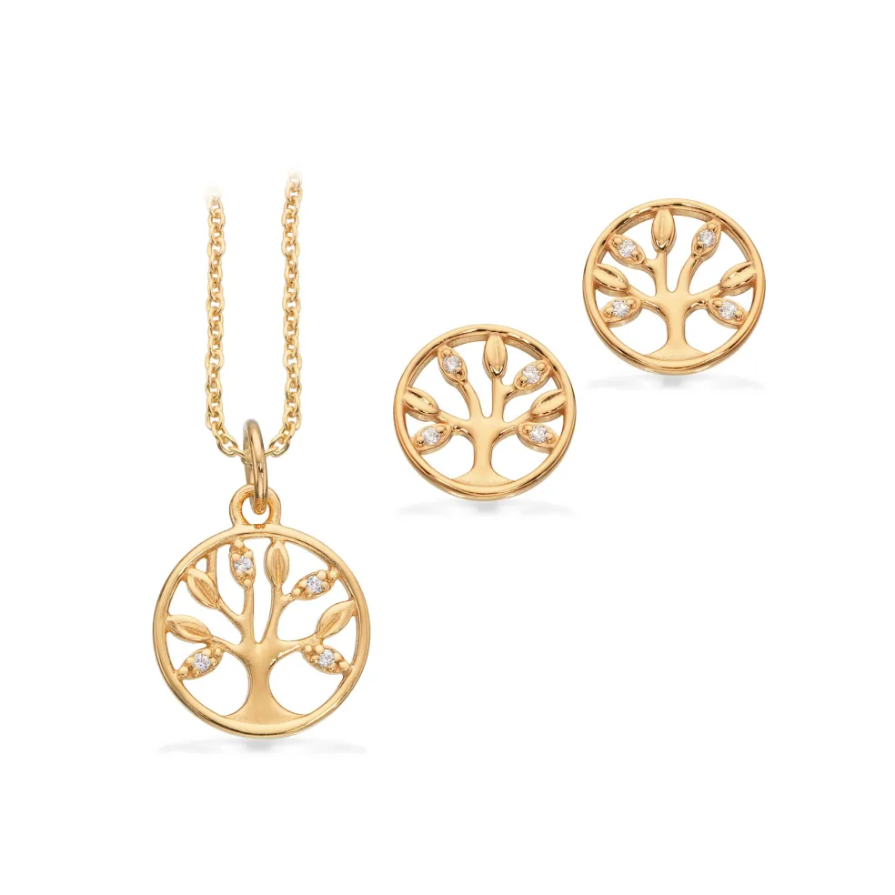 Scrouples Smykkesæt med Livstræer i Guldbelagt Sølv