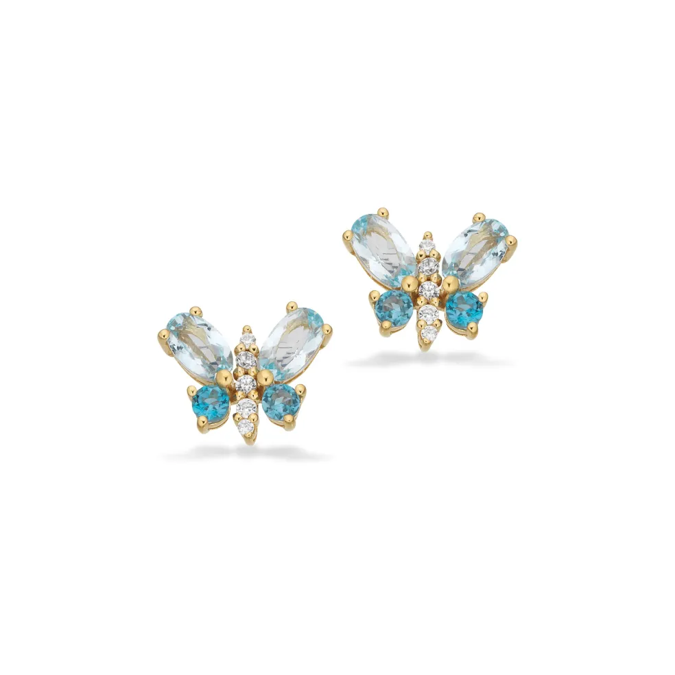 Scrouples – Sølv Forgyldt Sommerfugle Ørestikker med Lyseblå, Blå og Klare Sten