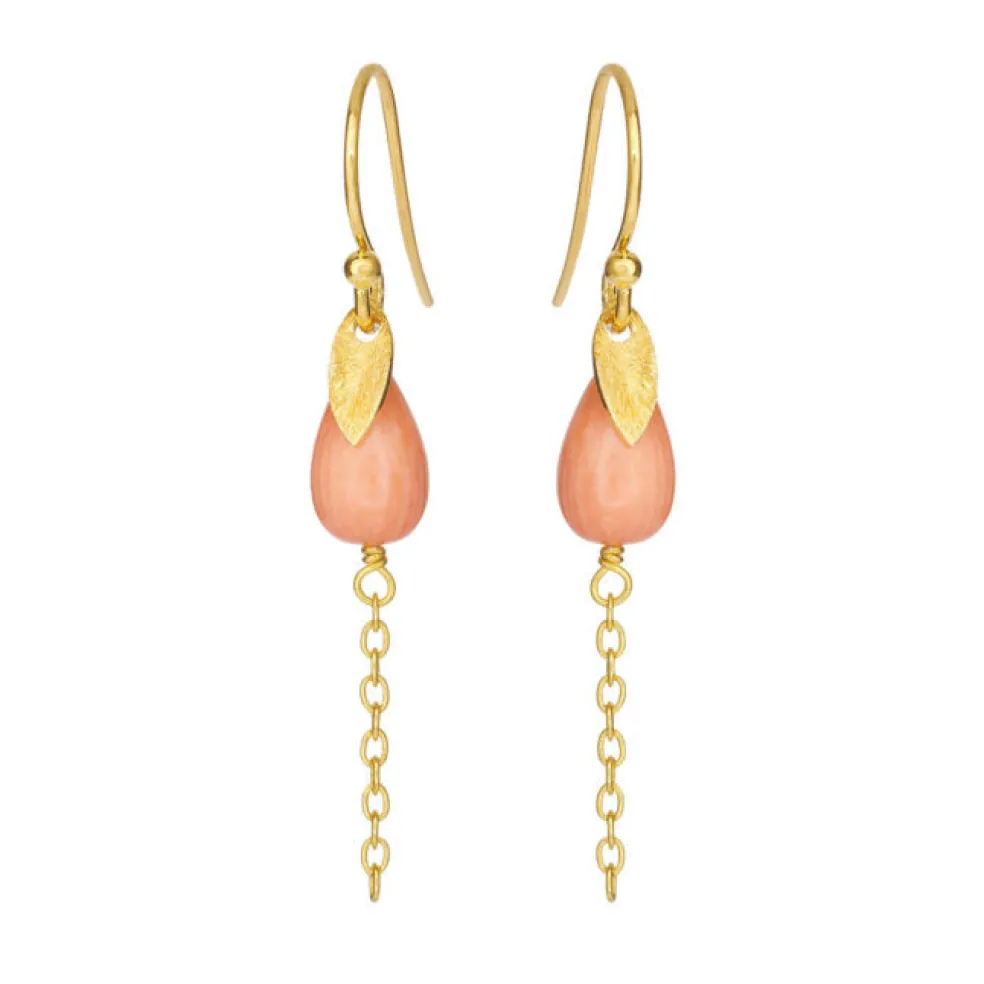 SFB – Forgyldte ørering med lyserød sea bambus – 5640-2-129