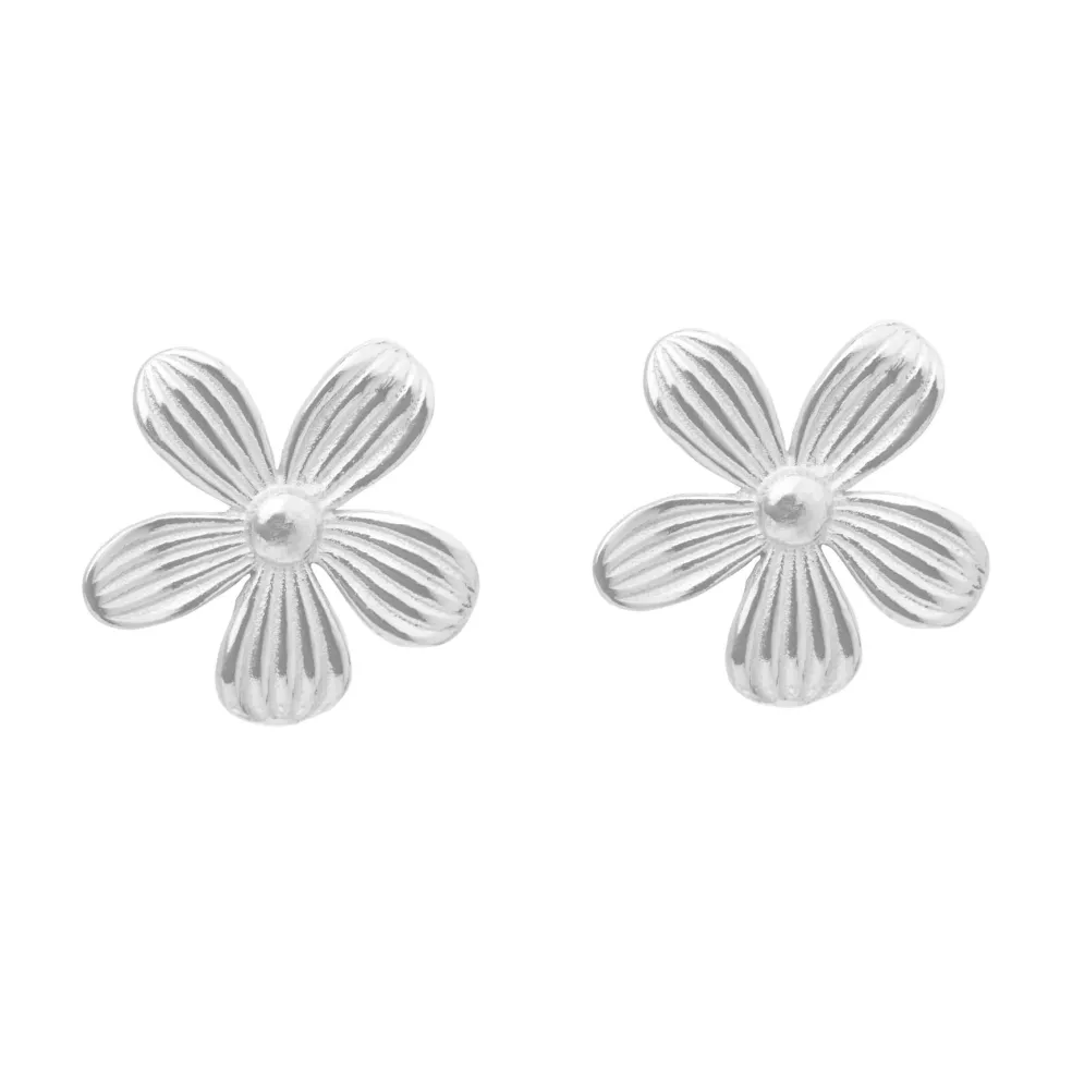 Sølv øreringe fra Susanne Friis Bjørner. Du får her en flot og fyldig blomst som ørestik. Den har 5 blade og hvert blad er riflet hvilket giver en rigtig god effekt.