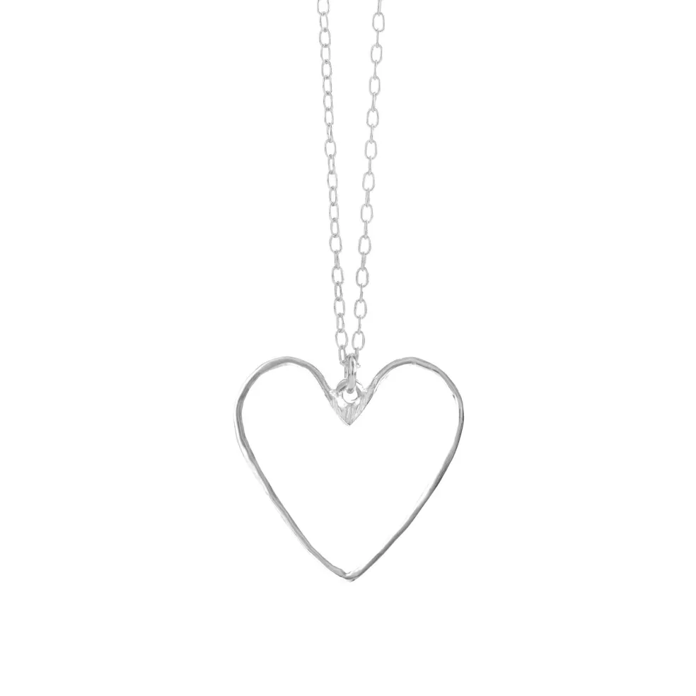 Sølv halskæde med et hjerte der er åbent, designet af Susanne Friis Bjørner. Hjertet er hamret og sidder på en bøjle.
