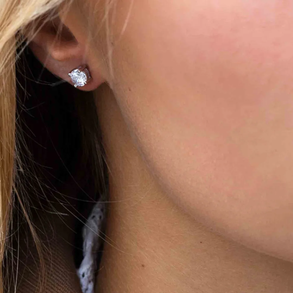 Disse smukke Princess Round ørestikker fra Sif Jakobs er det perfekte valg til et klassisk og elegant look. Ørestikkerne er fremstillet i sterlingsølv og prydet med klar, syntetiske sten, der sidder sikkert fast i en grabbefatning med fire grabber.