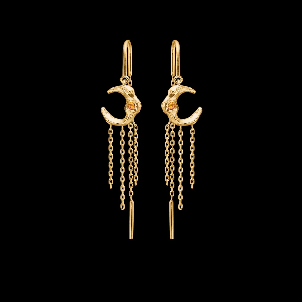 Studio Z – Lunar Ørekæder med Måne og Orange Sten
