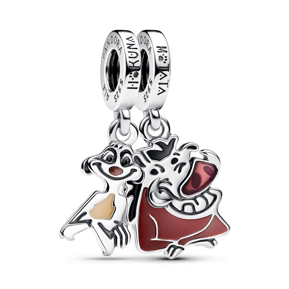Pandora: Disney Løvernes Konge Charm med Timon og Pumbaa i Sølv med Farverig Emalje