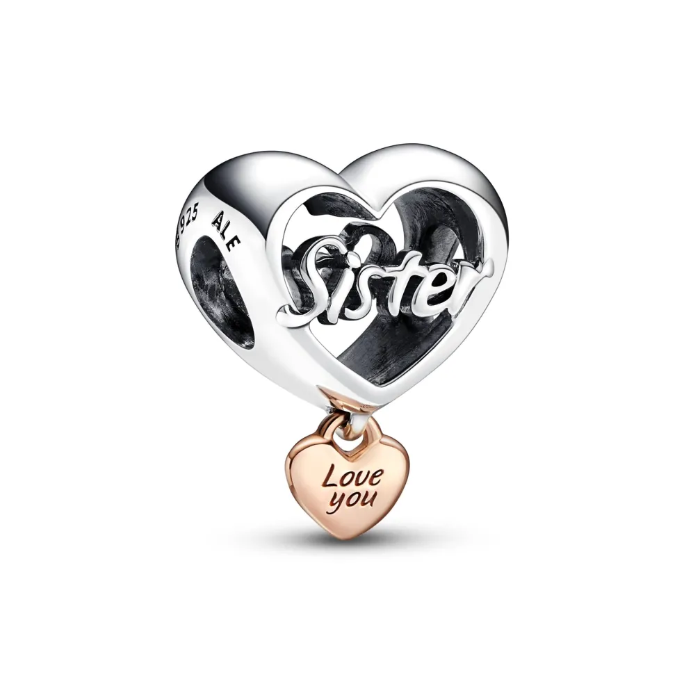 Charmets nøje udformede design indfanger essensen af søsterkærlighed med et stolt “Sister”-præg, der stråler ud. Lige under det store hjerte hænger et mindre, forgyldt hjerte, der bærer den inskription, der siger “Love You”. Dette tilføjer en ekstra lag af følelsesmæssig dybde og gør det til en hjertevarm gave til din yndlings søster.