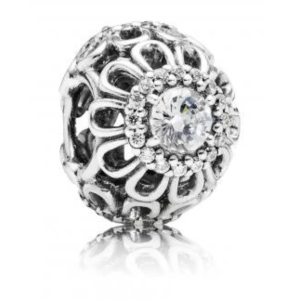 Flot Pandora sølv charm med 3 store zirkonia sten omkranset af små fine zirkonia sten