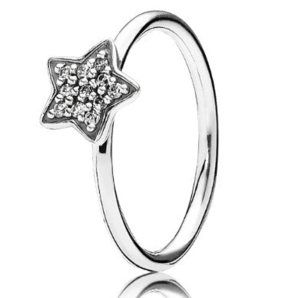 Flot Pandora sølvring med zirkonia i stjerneform på toppen, oxiderede detaljer