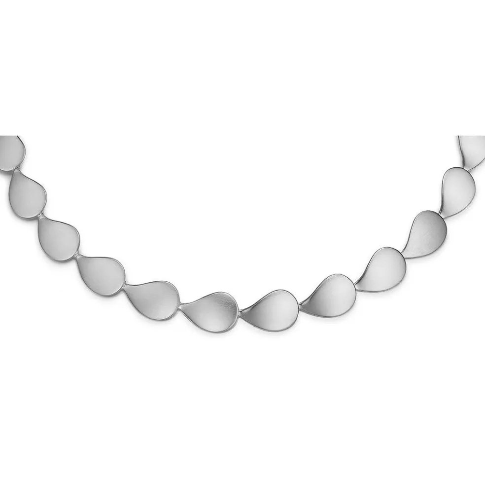 Meget smuk og stilren sølv halskæde. Halskæden er bygget op af dråbe formet led i et enkelt og smukt dansk design. Med denne smukke halskæde fra Randers sølv bliver man taget tilbage igennem den danske smykke kultur.