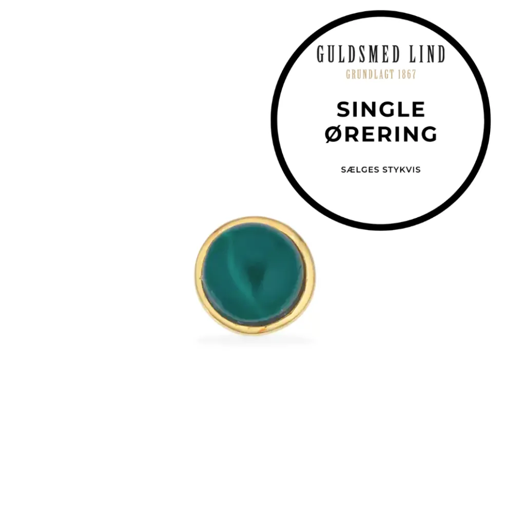 Guldbelagt sølv ørestik med grøn sten fra Scrouples. Den grønne sten sidder i en blankpoleret fatning.