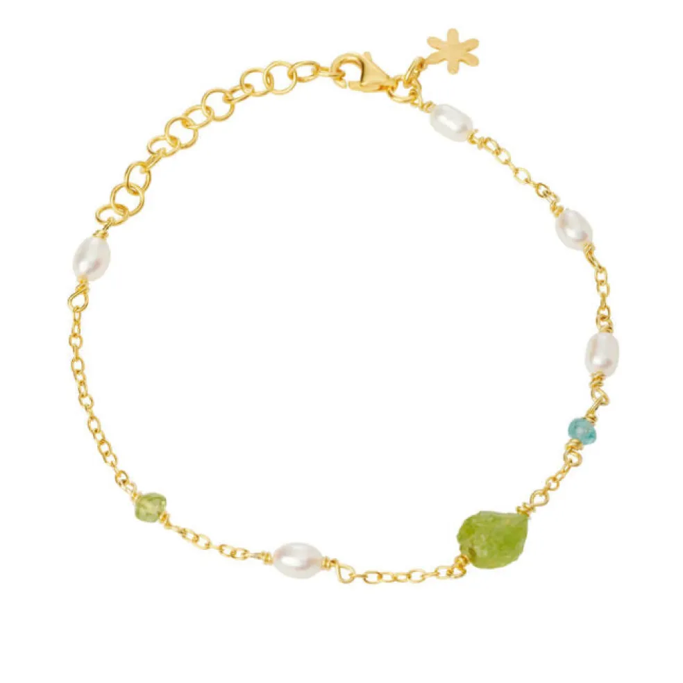 Anker armbånd lavet i forgyldt sølv med perler samt ægte sten fra Susanne Friis Bjørner.