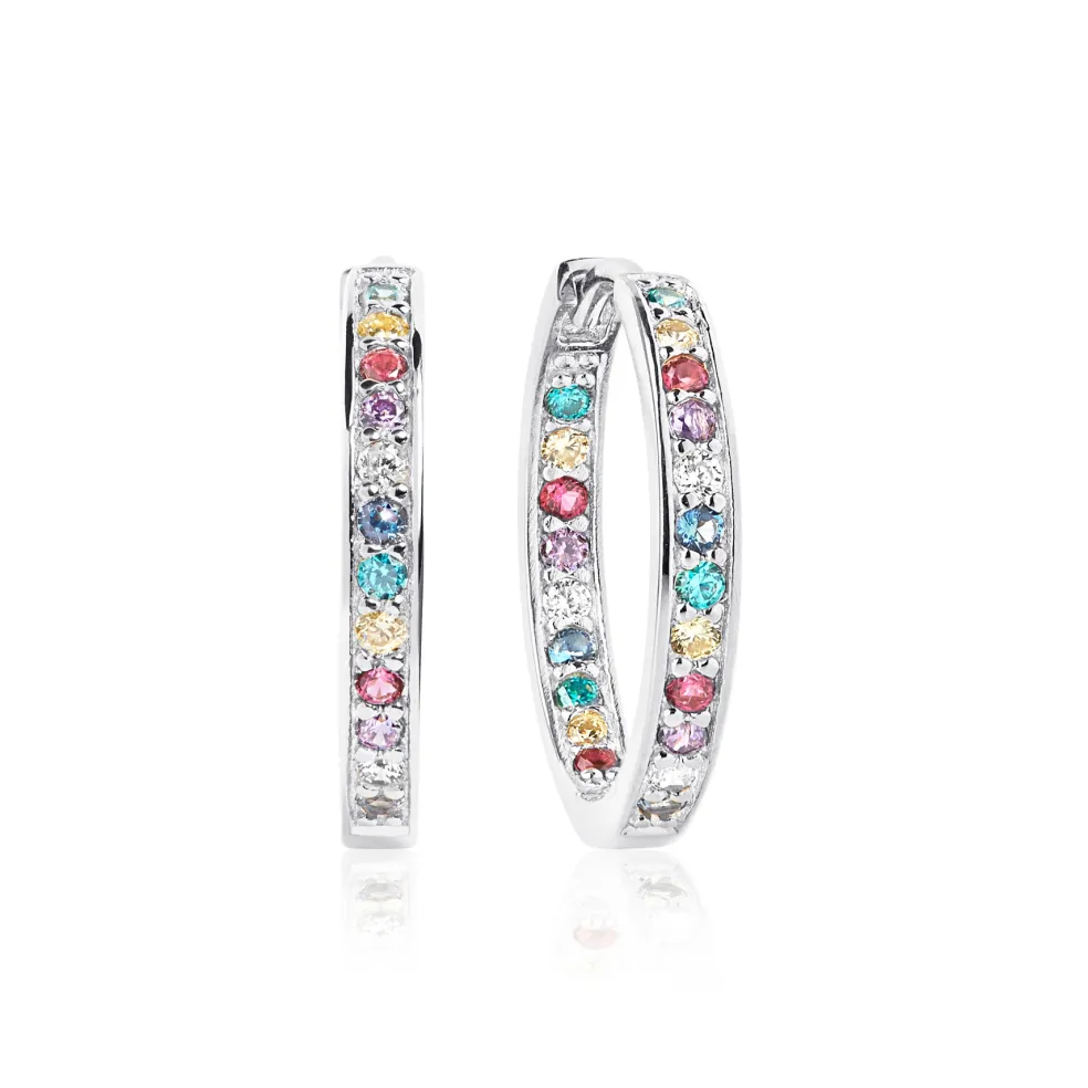 Sølv creoler i serien Corte fra Sif Jakobs. Øreringen har små fine farvede sten der sidder både udvendig og indvendig.